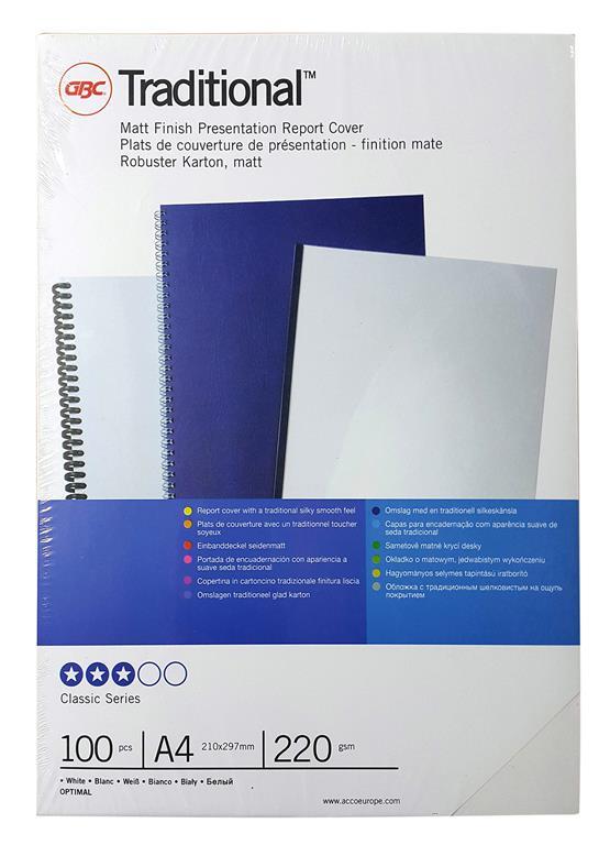 GBC Karton bel nesvetleč, A4, 220 g, 100 kos