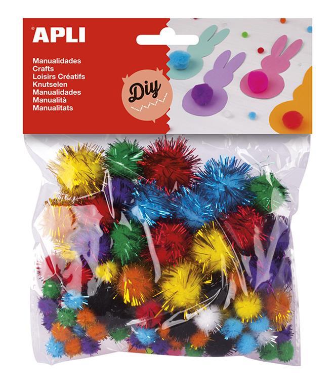 - pompom kroglice v različnih velikostih in barvah z bleščicami
