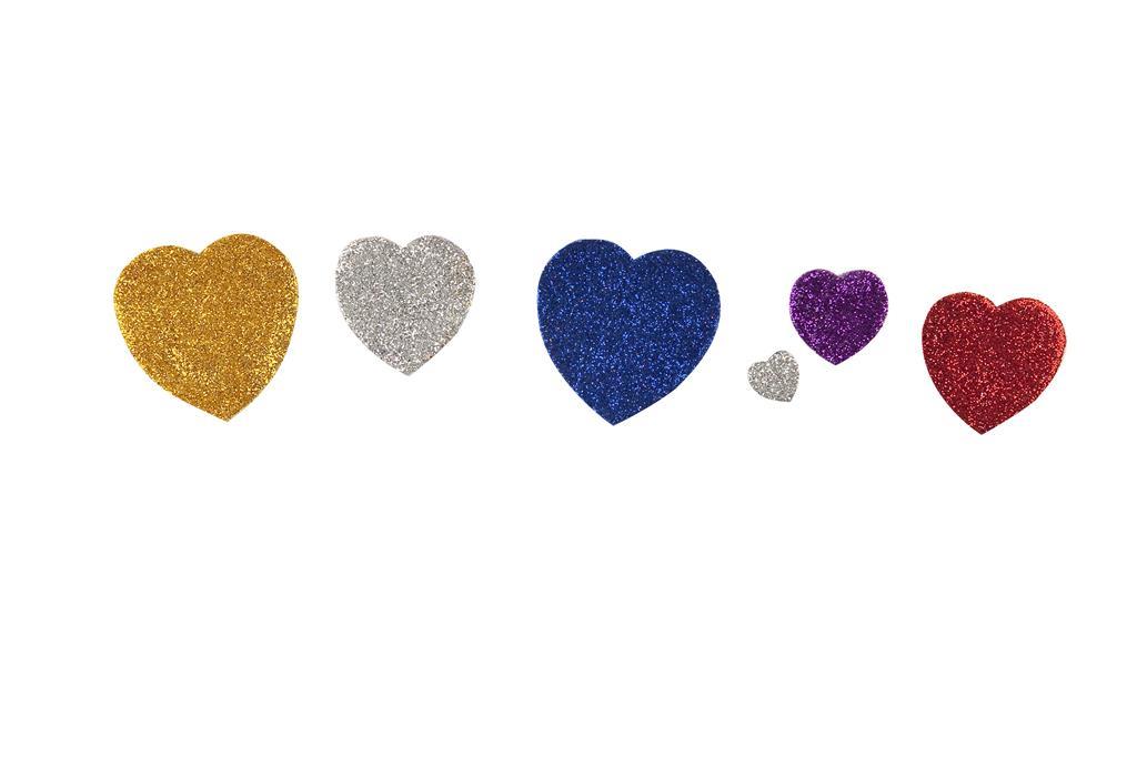 - srca iz penaste gume z bleščicami v različnih barvah: srebrni, modri, vijolični, rdeči in zlati
