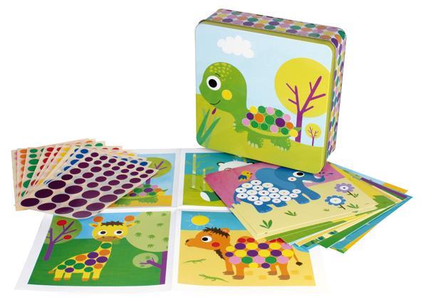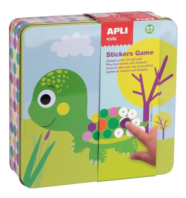 Apli Kovinska škatla igra z nalepkami, živali