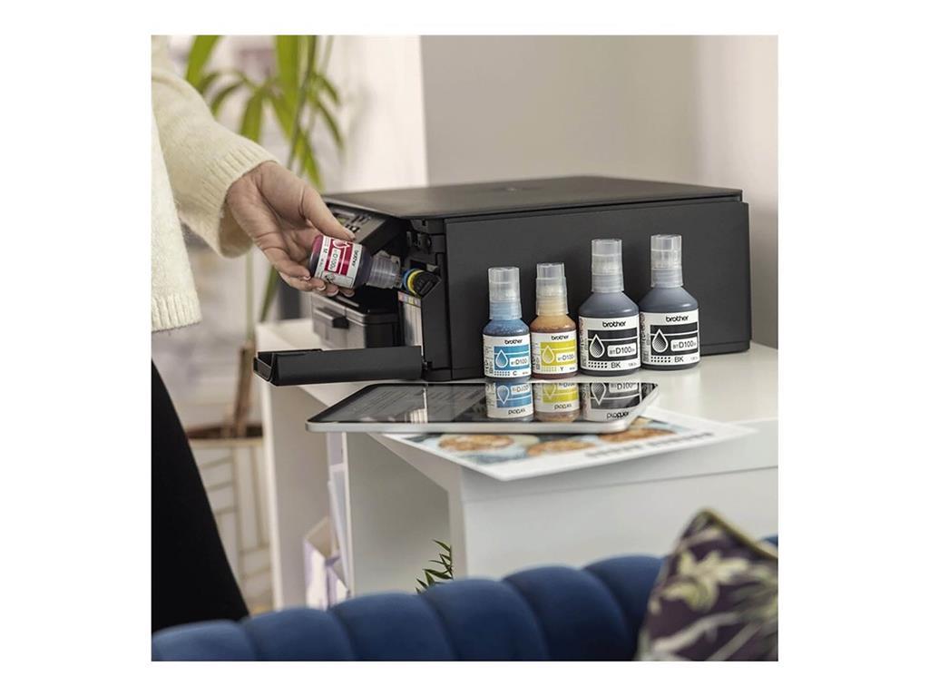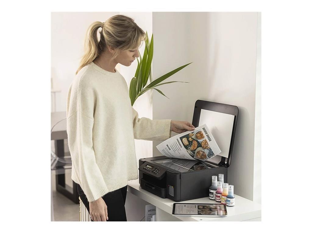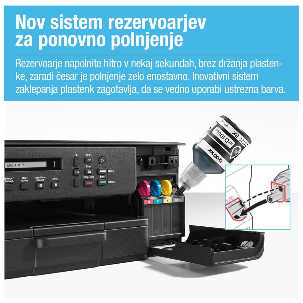 Z rezervoarji za ponovno polnjenje in priloženimi plastenkami črnila velike kapacitete lahko tiskate več in hkrati prihranite pri stroških tiskanja. Enostavno povezovanje in nastavitev omogočata uporabniku prijazno uporabo teh kompaktnih naprav.