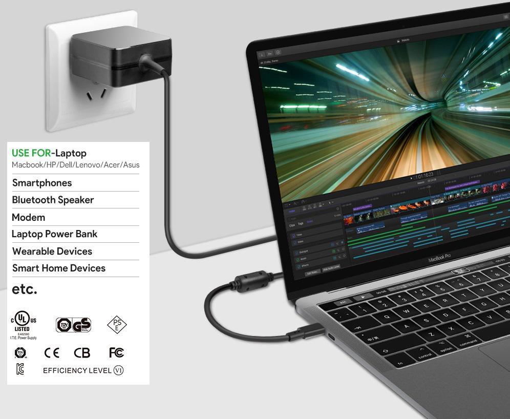 USB-C napajalnik 45W 5V2A-20V2.25A Vtič:USB-C EU zidni - 5V2A,9V2A,12V2A,15V3A,20V2.25A