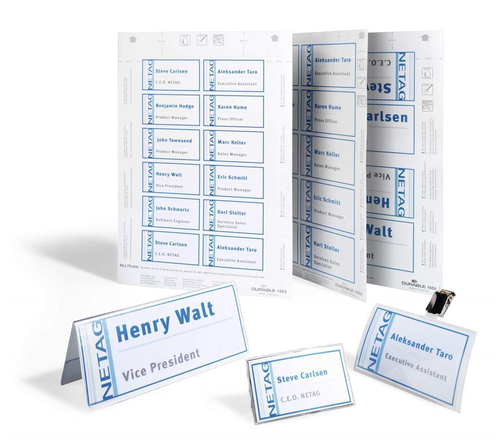 Za enostavno in profesionalno izdelavo napisov za katerekoli Durable identifikacijske kartice ali namizne ploščice priporočamo uporabo programske opreme DURAPRINT®: www.durable.eu/....