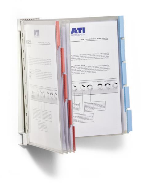 - stenski sistem prikazovalnih plošč z 10 predstavitvenimi mapami v formatu A4 (po 5 kos v rdeči in modri barvi)