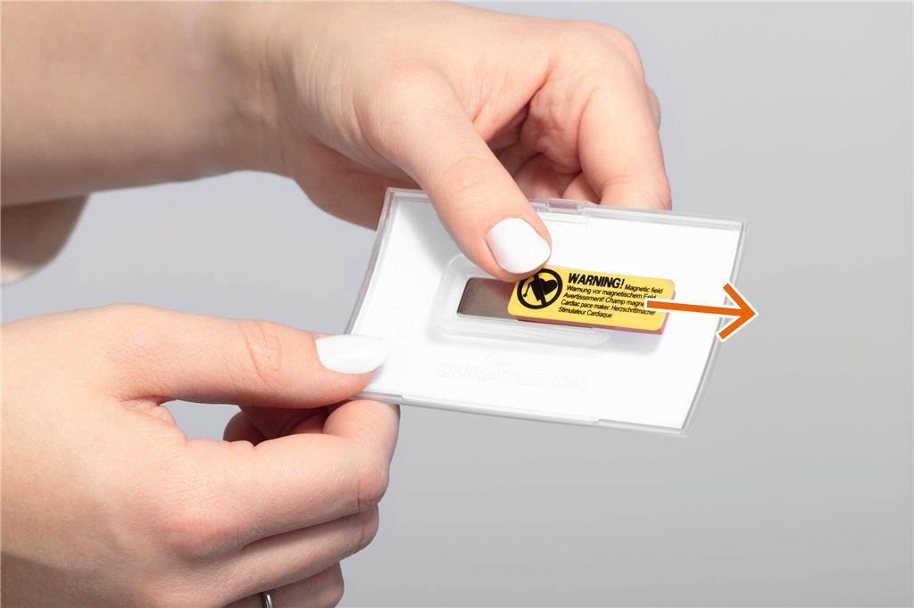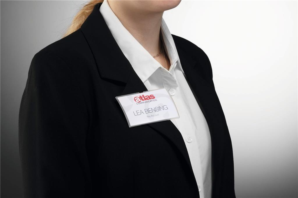 - konveksna, enodelna tablica z imenom iz 70 % recikliranega polipropilena s posebnim magnetnim pritrditvijo, ki preprečuje, da bi se tablica z imenom zvila, zdrsnila ali zrahljala, ko jo nosite