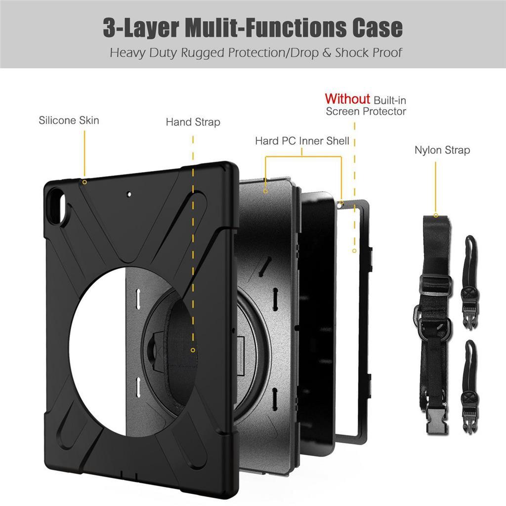Vgrajeno 360° vrtljivo stojalo omogoča uporabo tablice v vodoravnem in navpičnem položaju. Vgrajena zaščita z zračnimi blazinicami ščiti vogale tablice ob padcu. Dvigani robovi spredaj in okoli odprtine za kamero nudijo boljšo zaščito pri padcih za kamero in sprednje steklo.