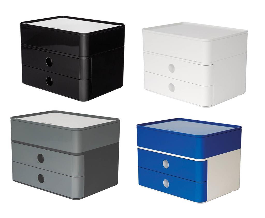 - dva izvlečna predala in odstranljiv zgornji predal s pokrovom, ki ga lahko uporabite tudi kot pladenj