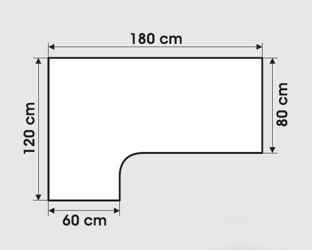 - širina mize na levi strani 120 cm, na desni strani 80 cm