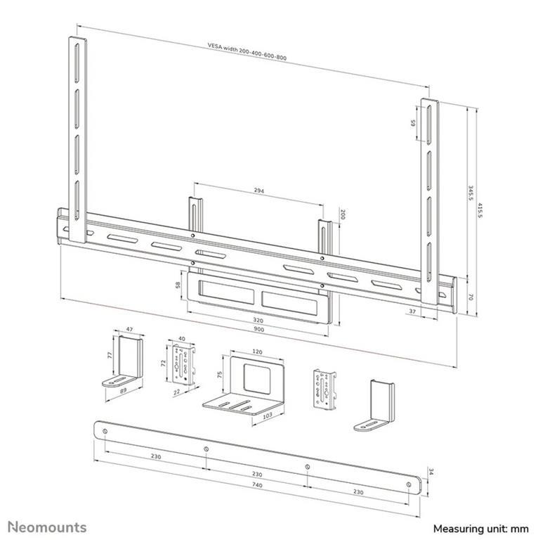 - univerzalni komplet video-zvočnika za zaslone z minimalno velikostjo 43" in vzorcem lukenj VESA v razponu od 200x200 do 800x600 mm