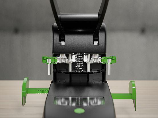 - zaradi nastavljivega mehanizma DIN A4/A5 je mogoče natančno preluknjati tudi posebne velikosti papirjev