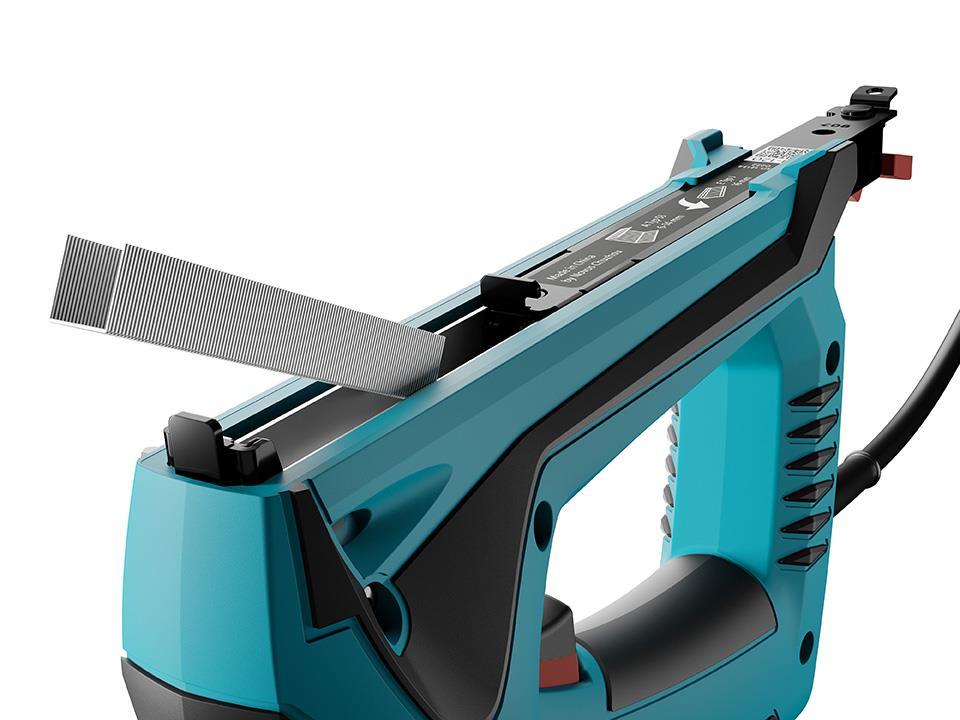- majhen, zmogljiv električni tapetniški spenjač za pritrjevanje tkanin in tekstila, optimalen za notranjo opremljanje in uporabo v delavnici