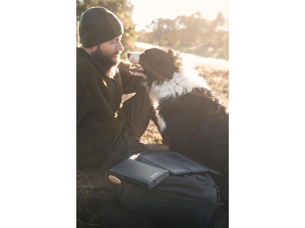Prenosna baterija Sandberg Solar 4-panel Powerbank 25000 vam resnično zagotavlja vso energijo, ki jo potrebujete za vse svoje naprave, saj lahko običajni pametni telefon napolni kar do 10-krat. Ko ste daleč proč od vtičnice, lahko napajalnik hitro napolnite s pomočjo velikega zložljivega solarnega kolektorja iz 4 solarnih plošč. Na ta način boste lahko svojo opremo vedno napolnili. Prenosna baterija ima dva izhoda USB-A in en izhod USB-C PD 18 W za hitro polnjenje. Za polnjenje preko kabla Micro USB je priložen vmesnik. Priložen je tudi karabin, s katerim lahko baterijo med solarnim polnjenjem obesite na šotor ali nahrbtnik. Solarne plošče lahko po potrebi pripnete ali odpnete. To je popolna rešitev za mobilno polnjenje na družinskem dopustu, pohodu ali kaki drugi pustolovščini.
