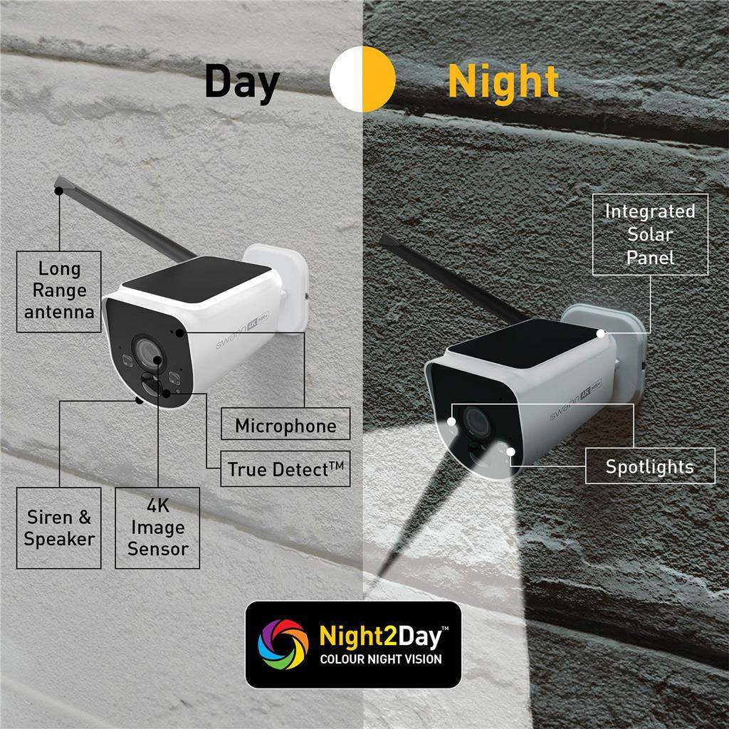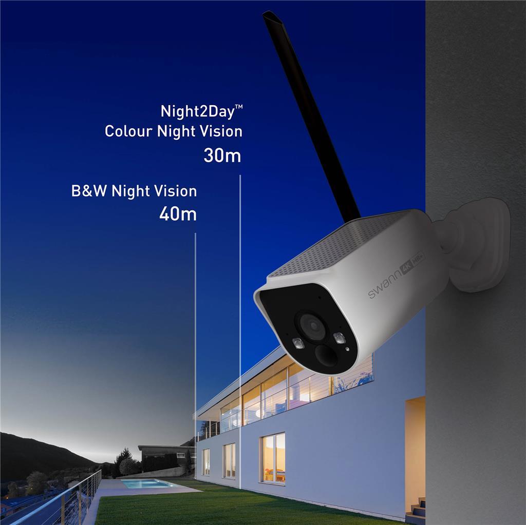 Swannov solarni varnostni sistem MaxRanger4K omogoča najdaljši doseg in najmočnejši brezžični signal – s 10-krat večjo pokritostjo kot drugi Wi-Fi varnostni sistemi ter možnostjo montaže vsake 4K dnevno/nočne kamere kjerkoli na prostem do 250 m (na odprtem) oziroma 100 m (pri običajni uporabi) od centralne enote (Hub). Tri kamere imajo vgrajene sončne celice, senzorje gibanja, luči, sirene, dvosmerno komunikacijo, barvni nočni vid in napredno funkcijo True Detect+ za zaznavanje toplote, gibanja, oseb in vozil. Posnetki se shranjujejo v 64 GB notranjega pomnilnika centralne enote, kar zadostuje za do 12 mesecev neprekinjenega snemanja – brez mesečnih stroškov. Sistem lahko upravljate prek aplikacije Swann Security. Idealna rešitev za večje domove, mala podjetja, podeželske objekte, kmetije in še več. To je daljša, močnejša in zanesljivejša brezžična zaščita.