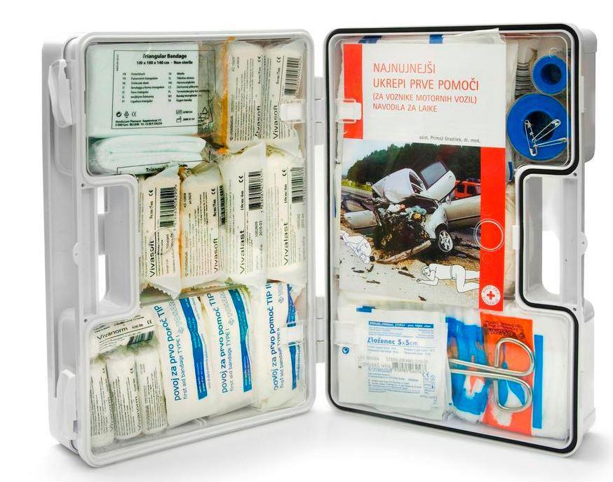 - kovček in rezervni komplet sta izdelana v skladu z novim Pravilnikom o organizaciji, materialu in opremi za prvo pomoč na delovnem mestu